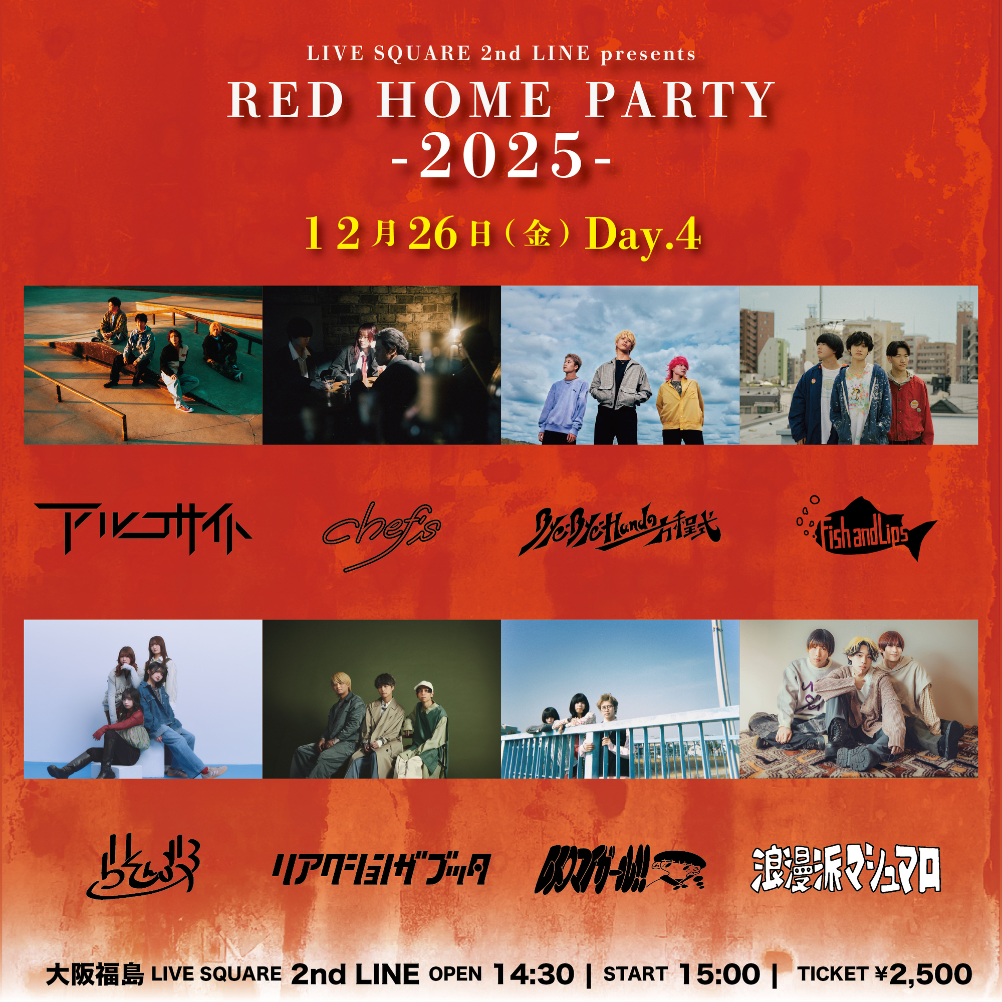 12月26日(金) LIVE SQUARE 2nd LINE presents 「RED HOME PARTY」Day4 @大阪2nd LINE の出演が決定しました。