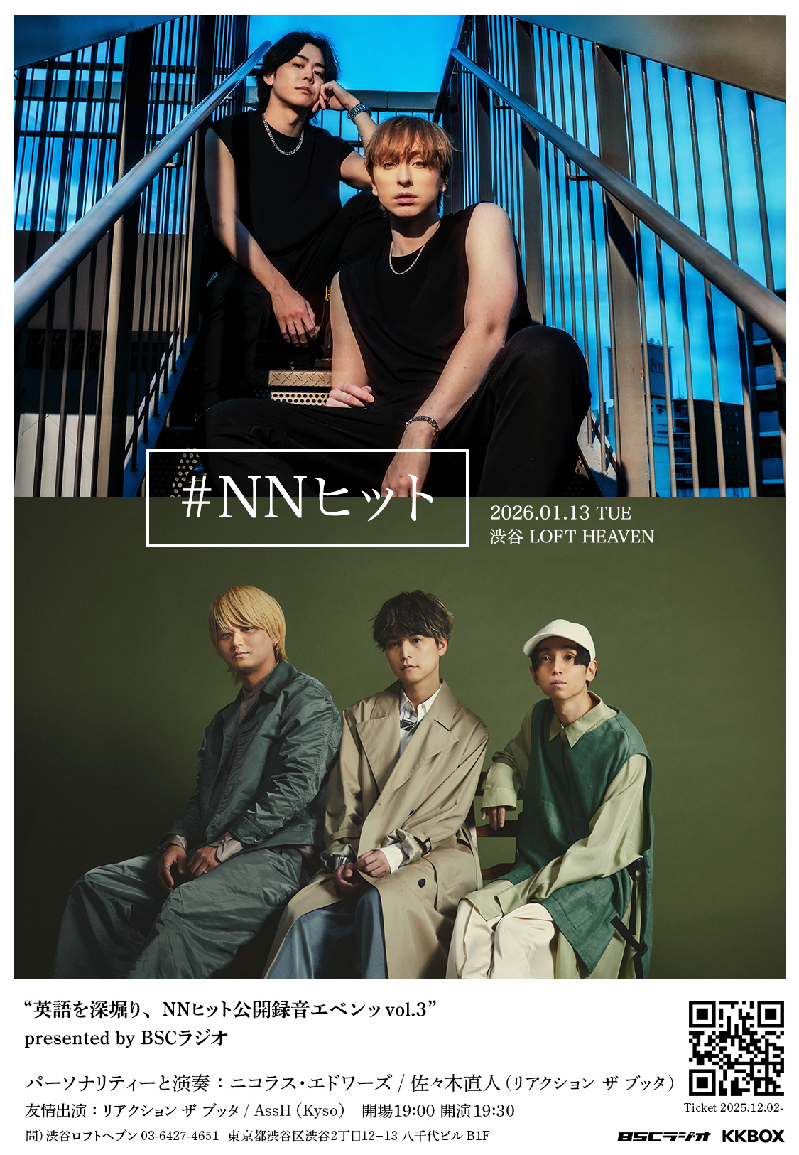 1月13日(火) "英語を深堀り、NNヒット公開録音エベンッ vol.3"presented by BSCラジオ @渋谷LOFT HEAVEN の出演が決定しました。