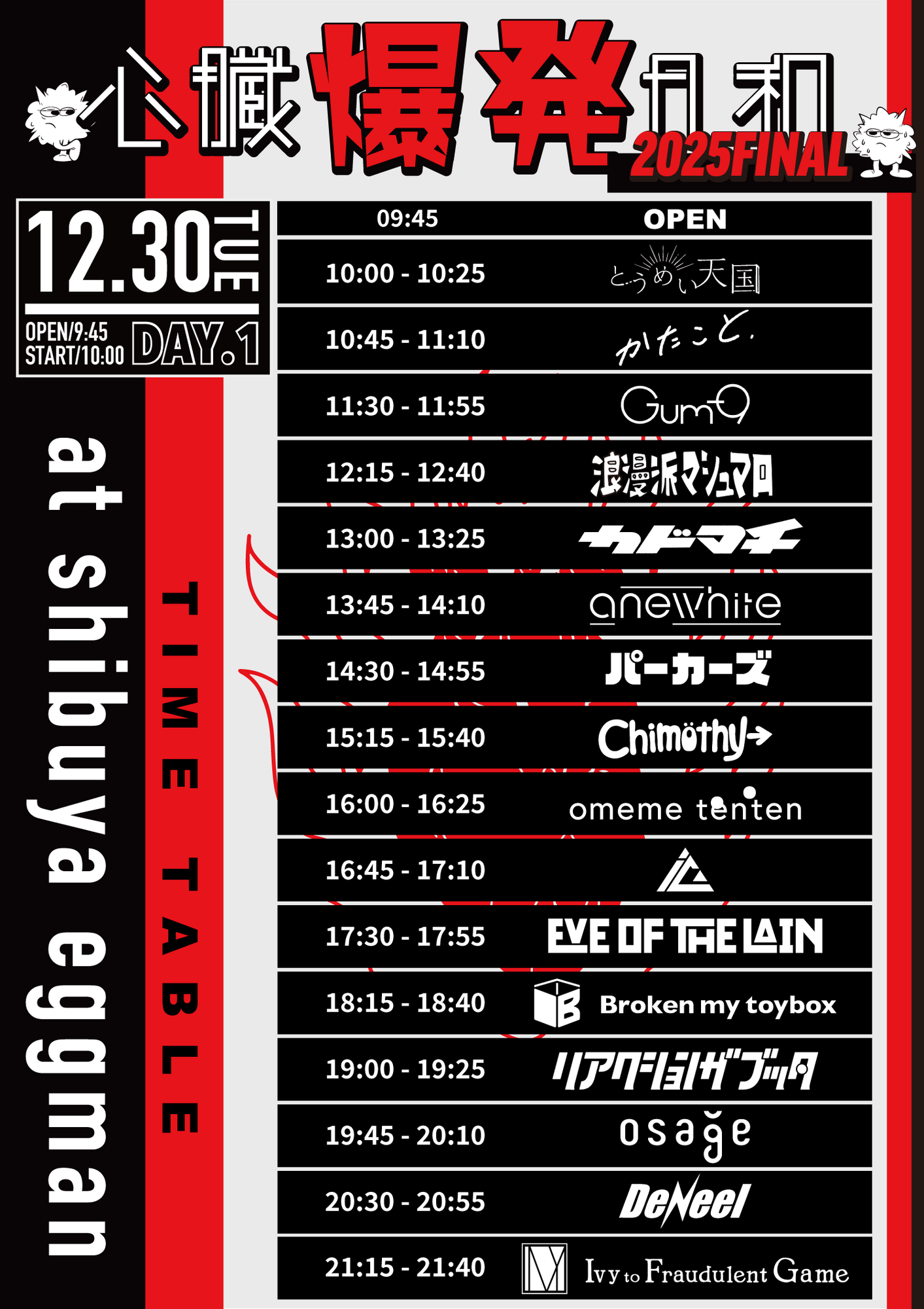 12月30日(火) 心臓爆発日和 -2025FINAL- DAY.1 @shibuya eggman の出演が決定しました。