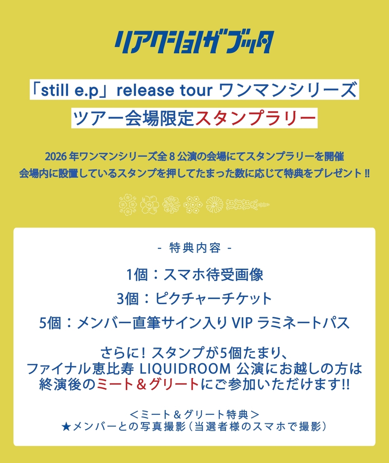 2026年 still e.p relese tour ワンマンシリーズ 全8公演の会場にてスタンプラリー開催決定!
