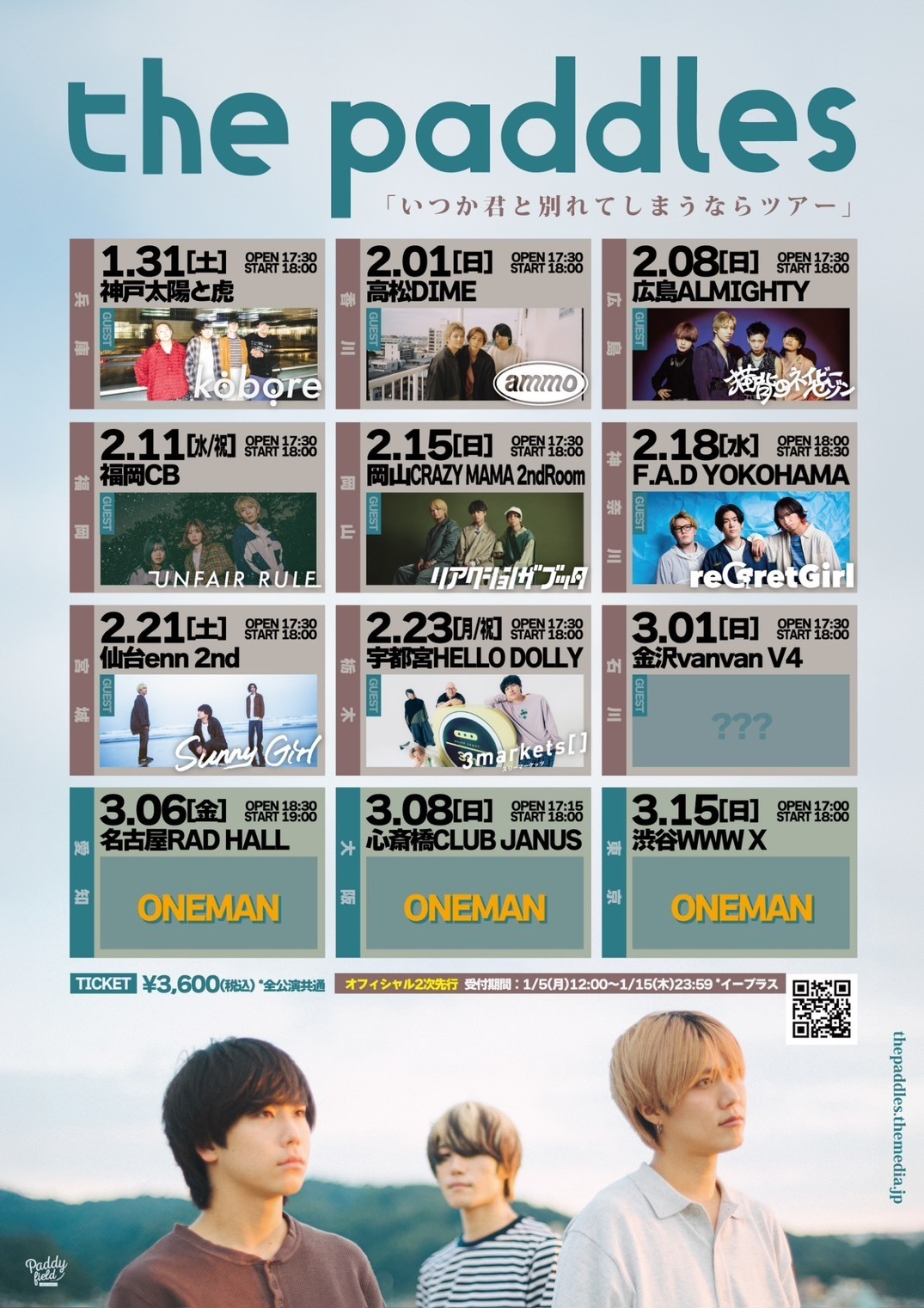 2月15日(日) the paddles「いつか君と別れてしまうならツアー」@岡⼭CRAZYMAMA 2ndRoom の出演が決定しました。
