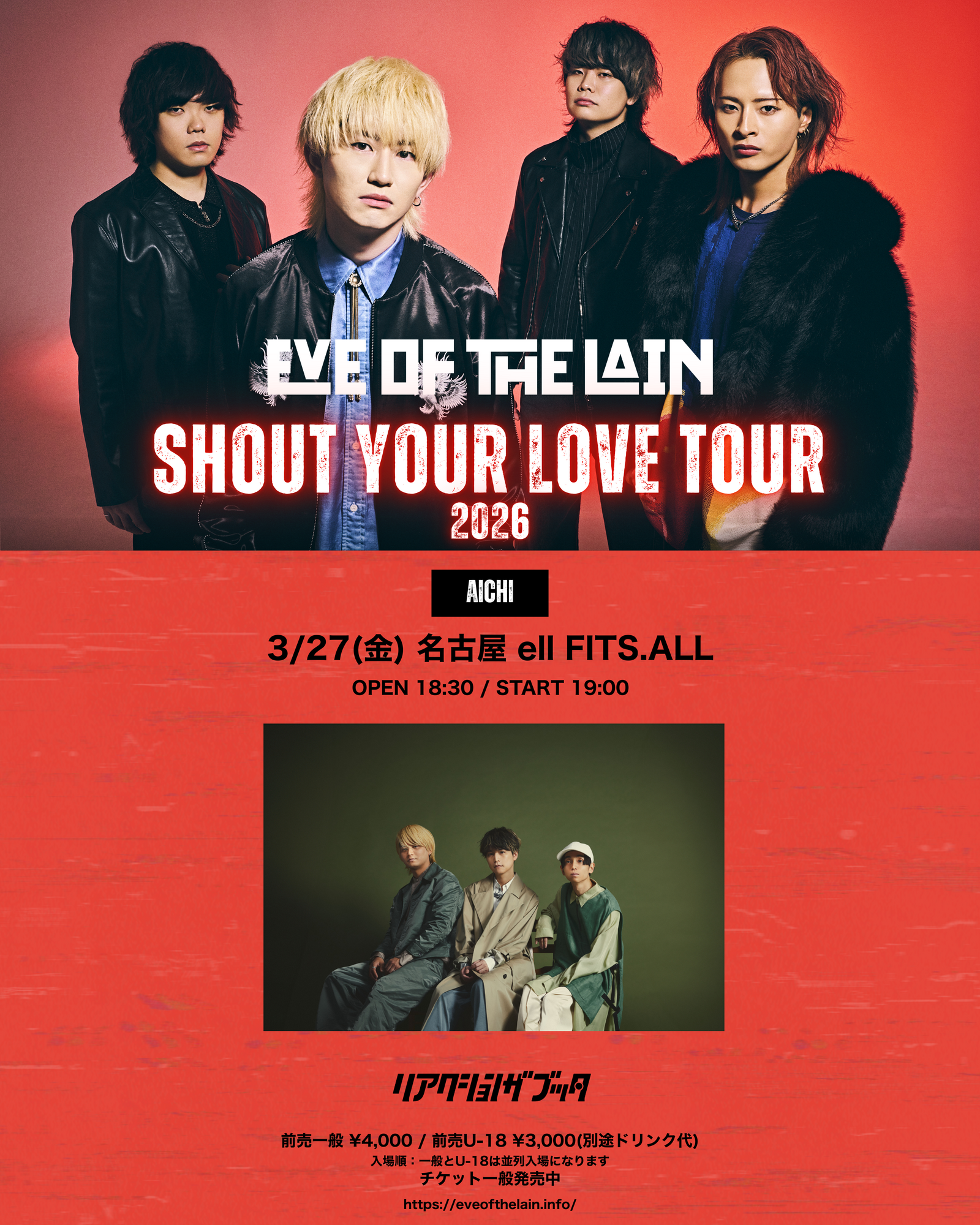 3月27日(金) EVE OF THE LAIN ”Shout Your LOVE TOUR “ @名古屋 ell.FITS ALL の出演が決定しました。