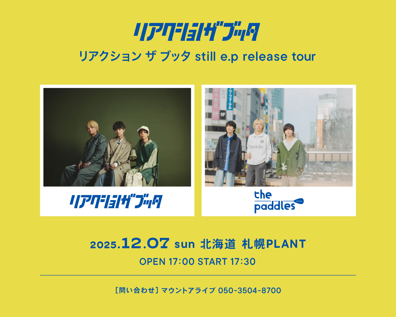 12月7日(日) リアクション ザ ブッタ still e.p release tour @札幌PLANT が決定しました。