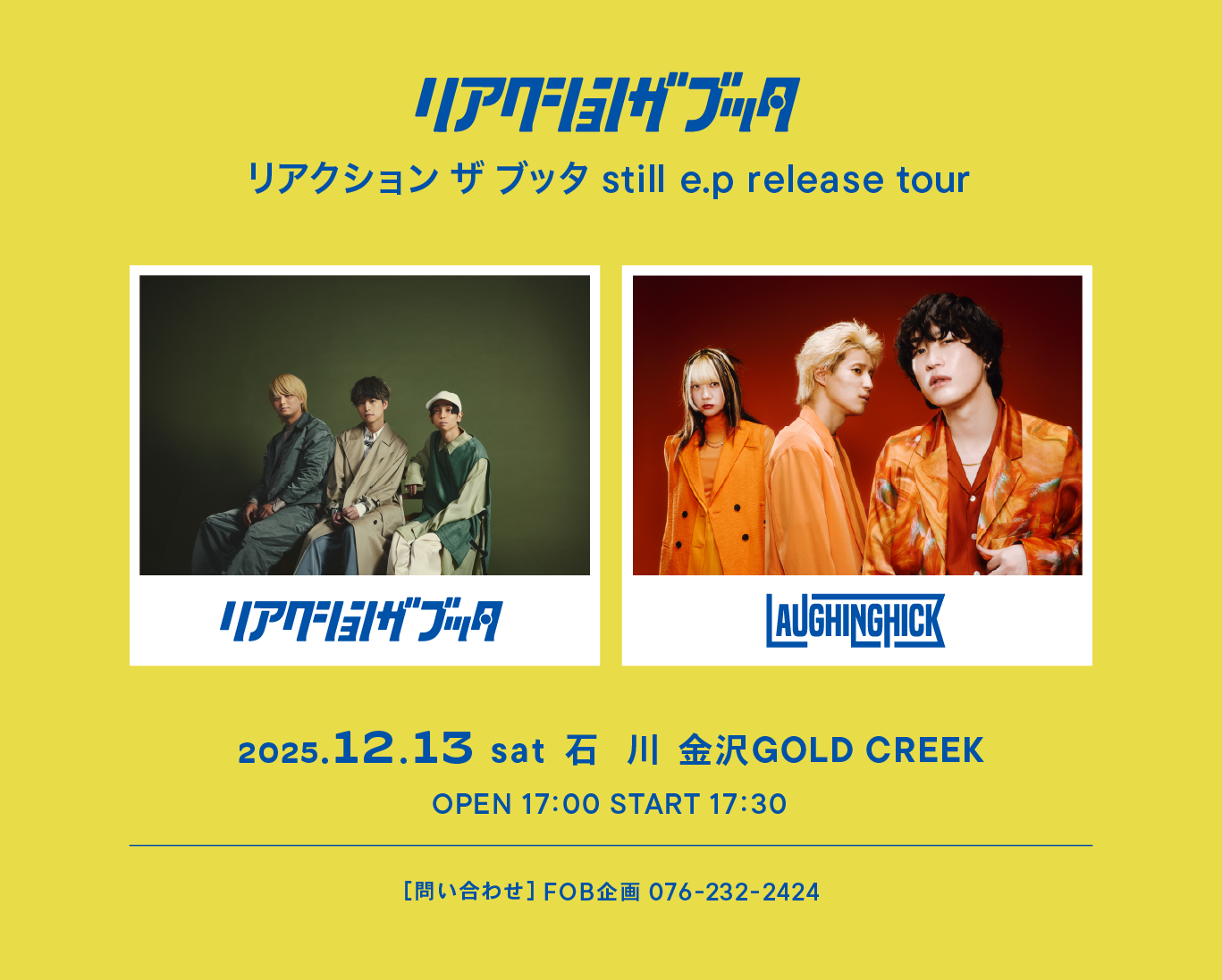 12月13日(土) リアクション ザ ブッタ still e.p release tour @金沢GOLD CREEK が決定しました。